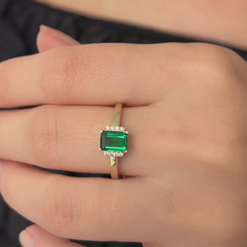 9ct Gold Emerald-Cut Gemstone Ring - Size P
